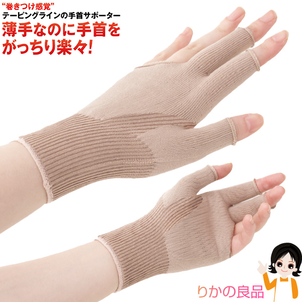 “巻きつけ感覚”テーピングラインの手首サポーター。薄手なのに手首をがっちり楽々!『指まで楽々手首サポーター』