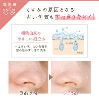 泡が汚れを含んだオイルとなじみ、黒ずみや開きの原因となる皮脂(タンパク質)汚れ、くすみの原因となる古い角質と一緒に、すっきりキレイに洗い流します。