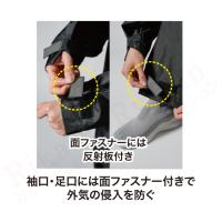 ・袖口、足口には面ファスナー付きで外気の侵入を防ぐ(面ファスナーには反射板付き)
