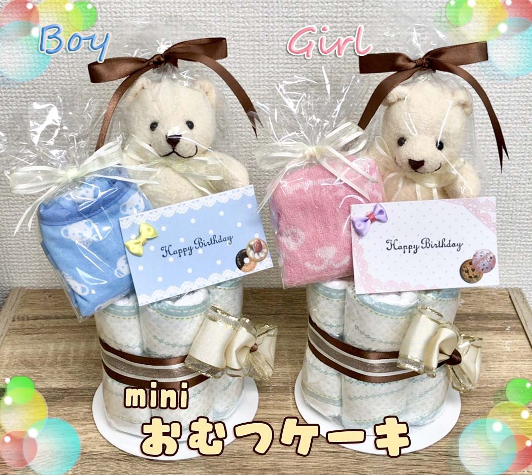 ミニサイズの1段おむつケーキです。ご出産のギフトにいかがでしょうか!