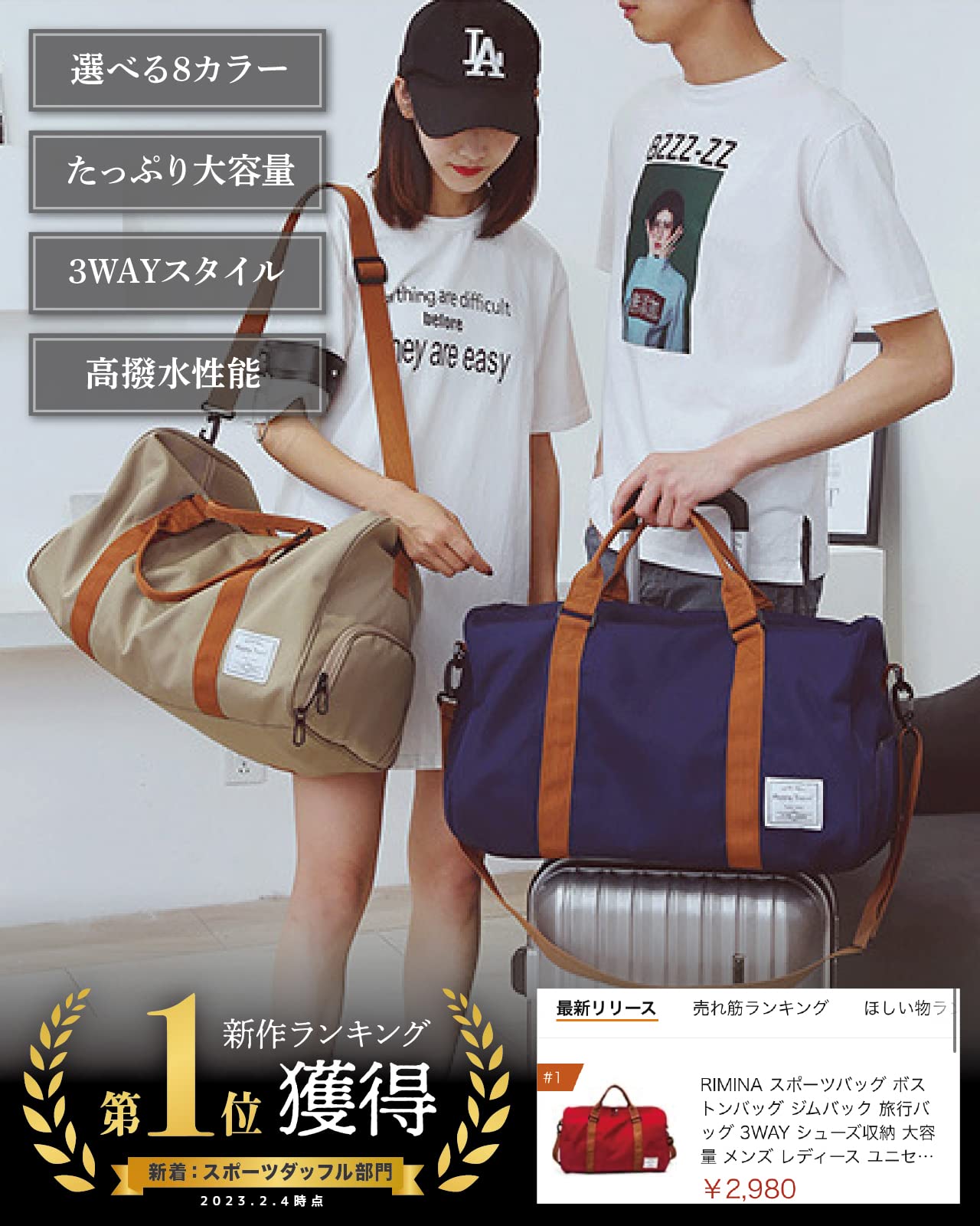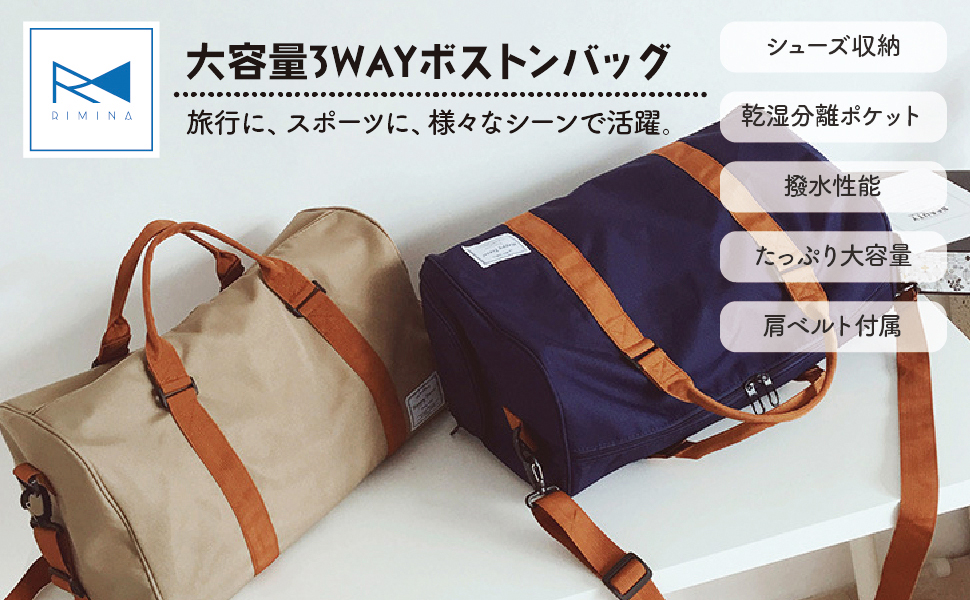 ボストンバッグ スポーツ 旅行 バッグ 軽量 大容量 ゴルフ ジム おしゃれ 折り畳み 3way ショルダー 防水 靴収納 RIMINA