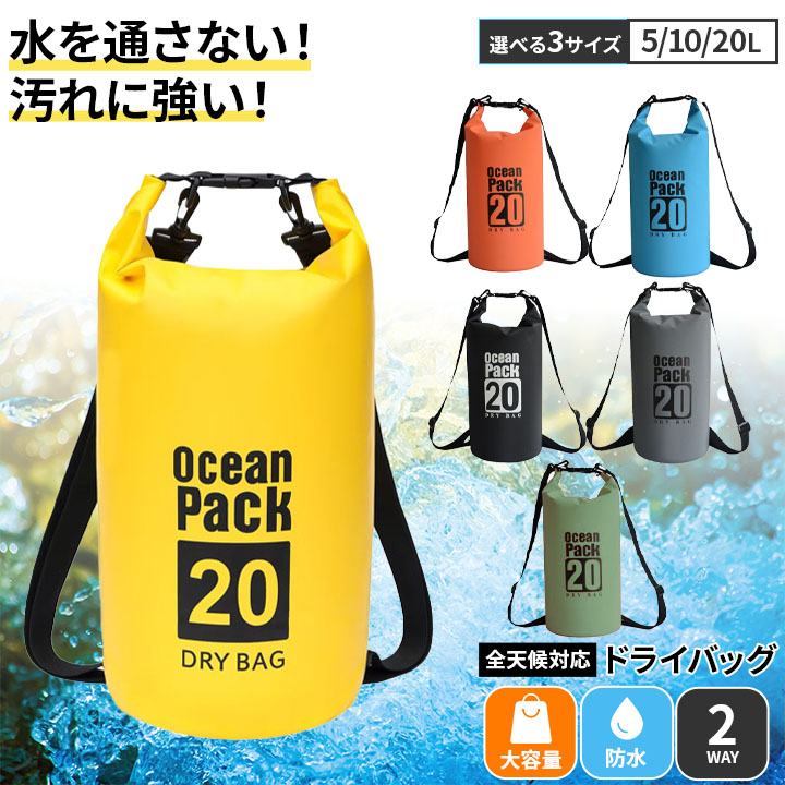 ドライバッグ 防水 5L 10L 20L 大容量 肩掛け 手提げ 2WAY 密閉 防水バッグ アウトドア 海水浴 マリンスポーツ ツーリング