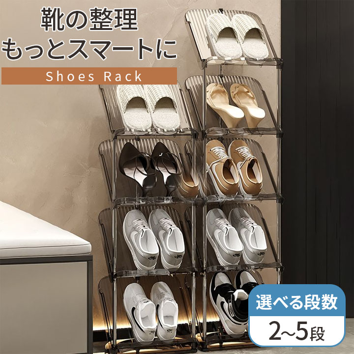 シューズラック 靴収納ラック 2段 3段 4段 5段 選べる 段数 省スペース 下駄箱 スリッパラック 靴箱 クリア グレー 簡単組立 大容量収納