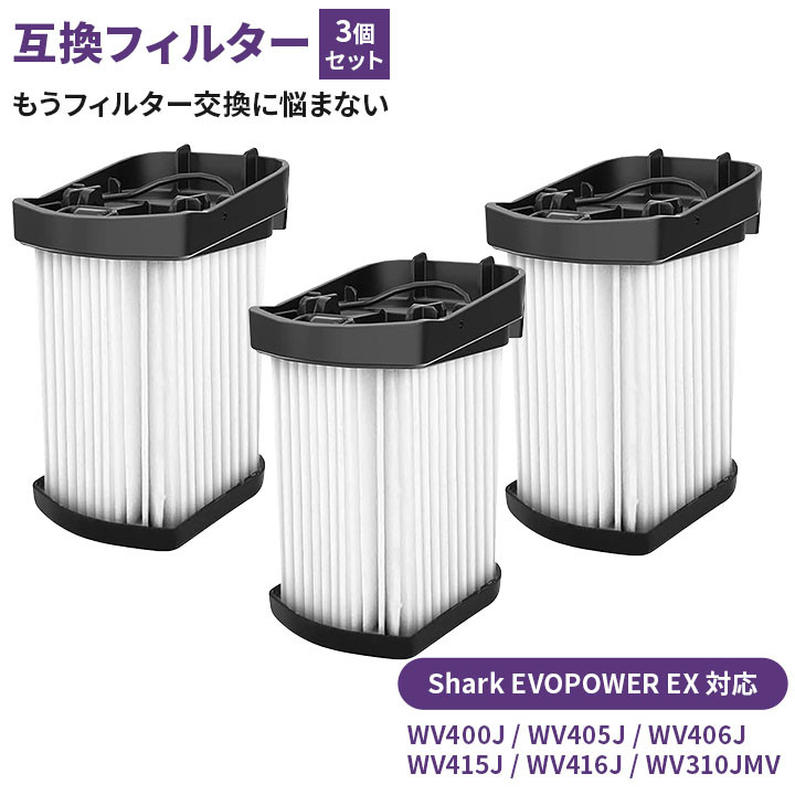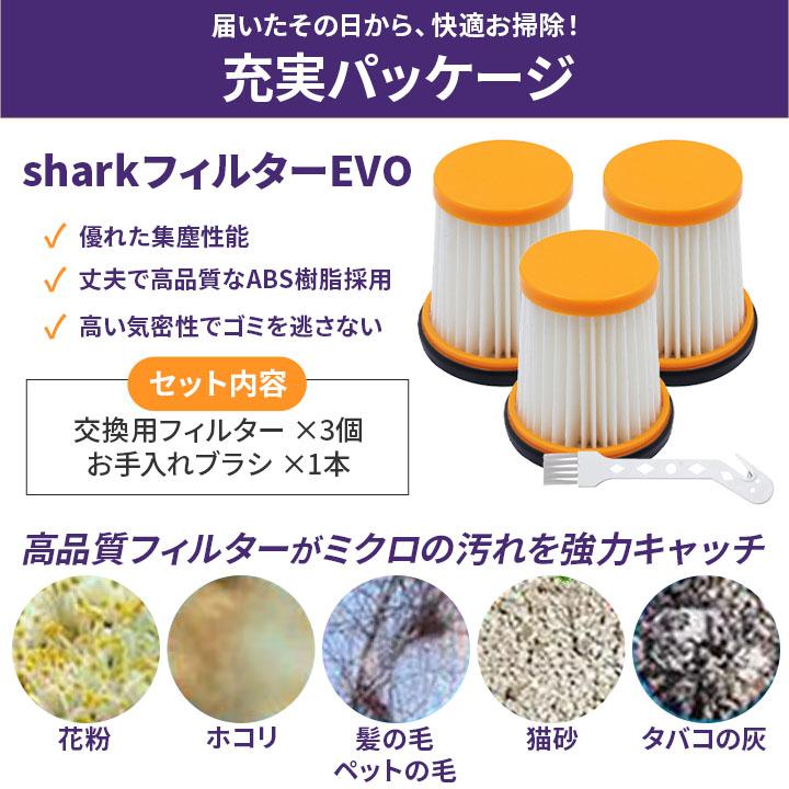 【互換品】Shark シャーク ハンディクリーナー フィルター 3個セット EVOPOWER 対応 WV200J/WV251J/WV280J 他 交換用 高密度 水洗いOK 互換品 ブラシ付き