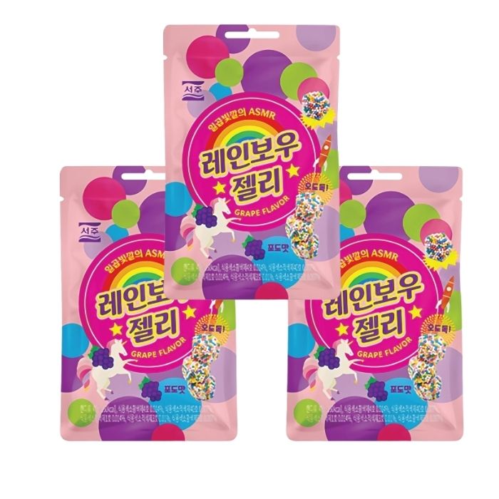 【3袋セット】ソジュ レインボーグミ 46g ぶどう味 韓国グミ ASMR YouTube モッパン ナーズロープ 地球グミ 七色のASMR インスタ映え プチプチ カラフルグミ