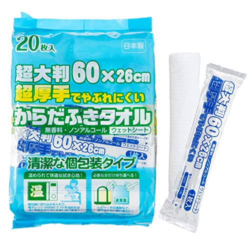 ・ 日本製 超大判 でやぶれにくい 個包装 の からだふき ウエットシート タオルです。