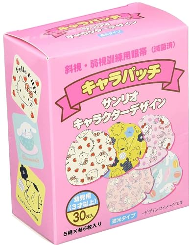 貼る眼帯 弱視用 アイパッチ 幼児 子ども用 個包装 30枚(5柄個包装×6) 女の子用 かわいい サンリオ キャラクター (ハローキティ2柄、