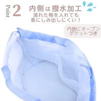 内側は撥水加工されているので、水着やバスタオルなど濡れた物を入れても染み出しにくい!