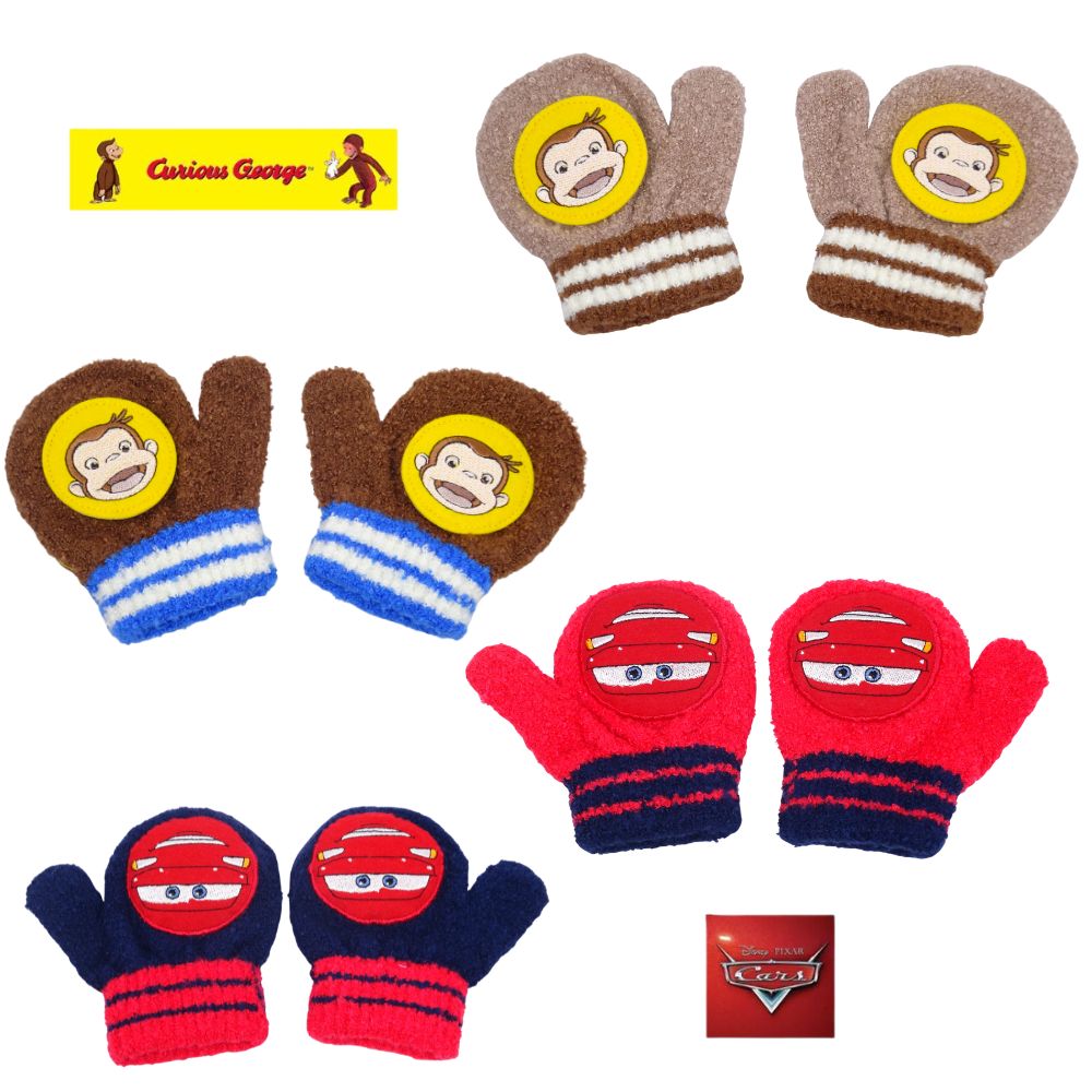 寒い季節に重宝する、ディズニーカーズとおさるのジョージ、ベビー手袋!