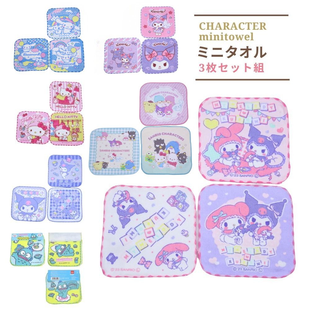 サンリオ ミニタオル3枚セット ハローキティ マイメロディ シナモロール ハンギョドン ハンカチ 入園入学 かわいい キッズ 女の子