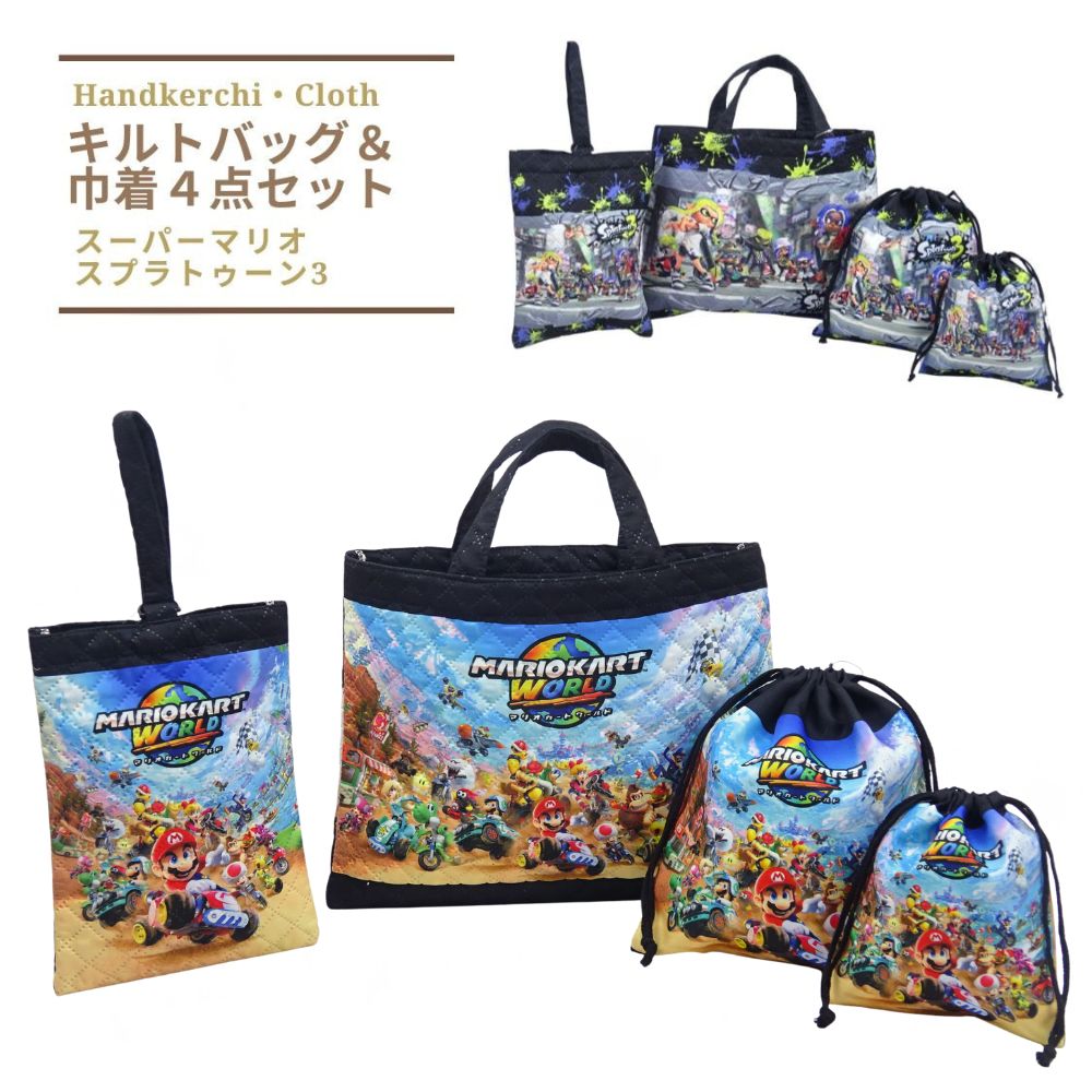 福袋4点セット スーパーマリオ スプラトゥーン3 キルトセット シューズバッグ レッスンバッグ 巾着大・小 通園 通学 子供 キッズ 入学 キルティング カバン