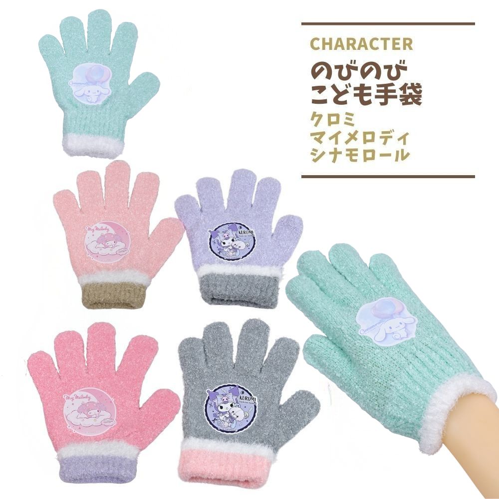 寒い季節に重宝する女の子に人気のキャラクター サンリオ シナモロール、クロミ、マイメロディ、キッズのびのび手袋!
