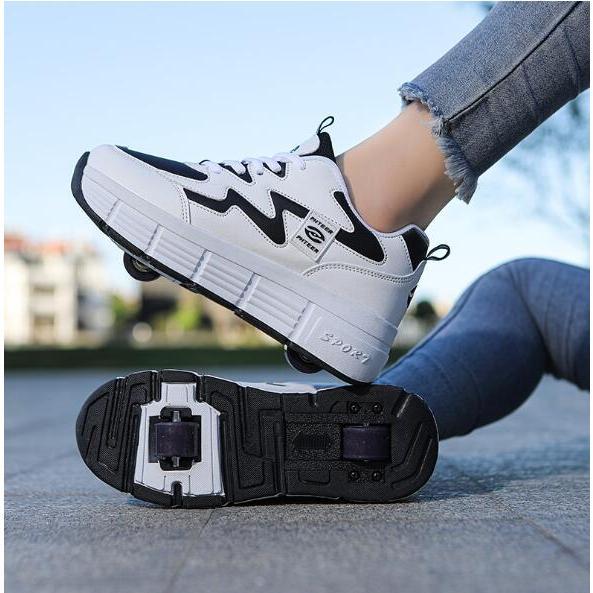 後ろボタンを押すだけで、スニーカーからローラーシューズに変身!