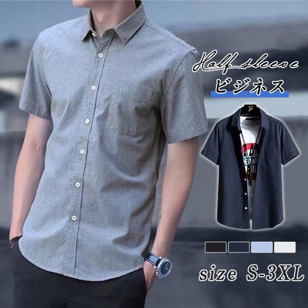 【特価】シャツ 半袖 メンズ 開襟シャツ カジュアルシャツ 折り襟 無地 胸ポケット付き スリム 夏服 通勤 オシャレ 細身 普段着 シンプル 新作 快適
