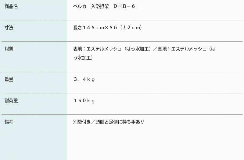 水切れが良く、担架に乗せたままお風呂に入れることもできるベルカです。