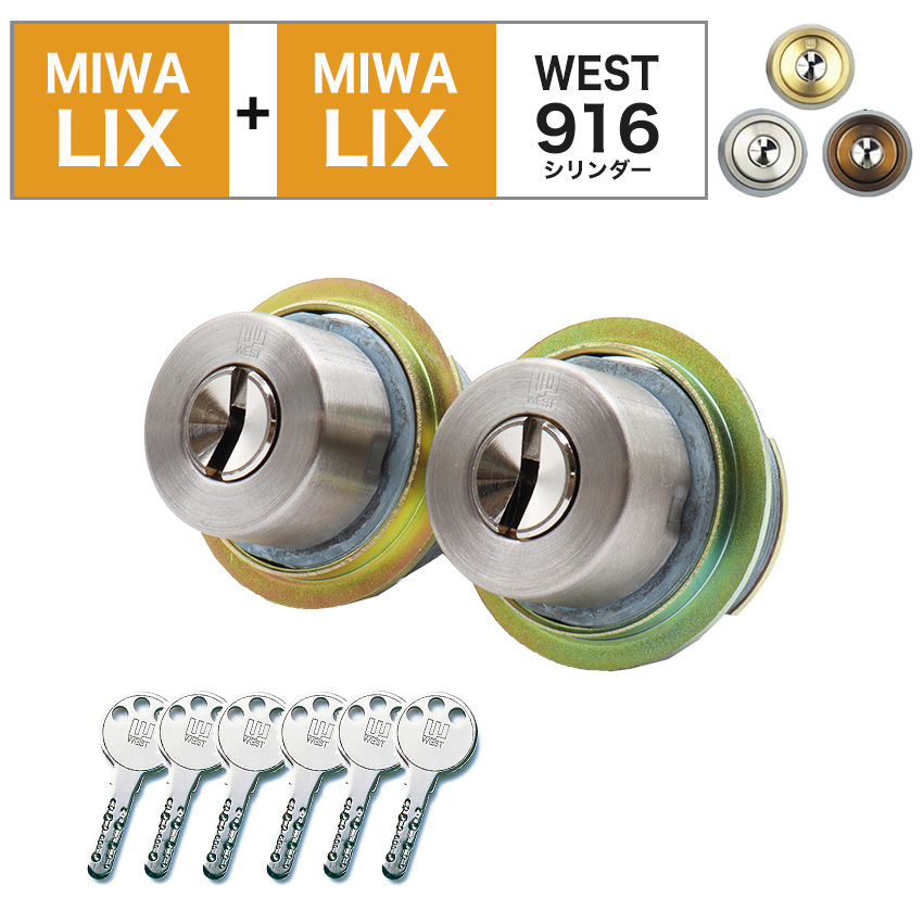 MIWA(美和ロック)のLIXタイプとLIXタイプの交換用WEST916リプレイスシリンダー2個同一キーセットです。上下2つの鍵(シリンダー)を1つのキーで施解錠することができます。ドライバー1本で自分で簡単に鍵の交換をすることができます。