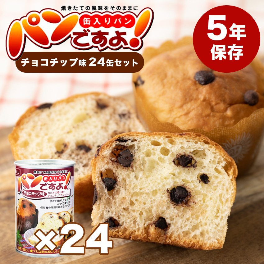 「パンですよ! チョコチップ味」はカカオの香り高いチョコチップがたっぷりのおいしいパンの缶詰になります。焼きたてのようにふっくらと柔らかく、保存食の常識を超えたパンになっています。5年間という長期保存ができるので、非常時に備える場合でも安心です。