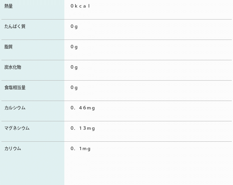| 原材料 | 水(鉱水) |