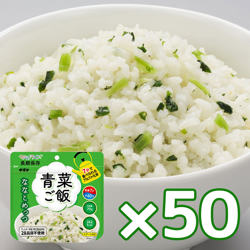 お湯か水を注ぐだけでふんわり美味しいご飯ができるアルファ化米の「ななこめっつ」。お湯で7分、水なら40分で出来上がります。簡単に調理でき、水でも美味しく召し上がれますので、災害時やアウトドアにも最適です。