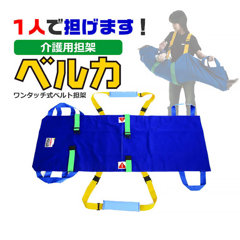布地をしっかりとベルトでささえてあるので持ちやすく、患者さんを包み込む形なので落としてしまうことなく、素人でもスムーズに運ぶことが出来ます。また、持ち上げたときも肩と腕で担ぐので軽く感じます。一般家庭での運用でも非常に扱いやすい担架です。