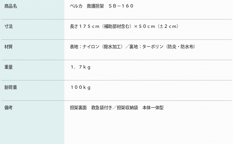 担架 折りたたみ 救護用 コンパクト 携帯 軽量 耐荷重100kg ベルカ 救助担架 160cmタイプ SB-160
