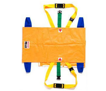 布地をしっかりとベルトでささえてあるので持ちやすく、患者さんを包み込む形なので落としてしまうことなく、素人でもスムーズに運ぶことが出来ます。また、持ち上げたときも肩と腕で担ぐので軽く感じます。一般家庭での運用でも非常に扱いやすい担架です。