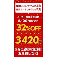 | 内容 | 野菜たっぷり皿うどん3食、野菜たっぷりちゃんぽん3食 | 賞味期限 | 製造日より366日 |