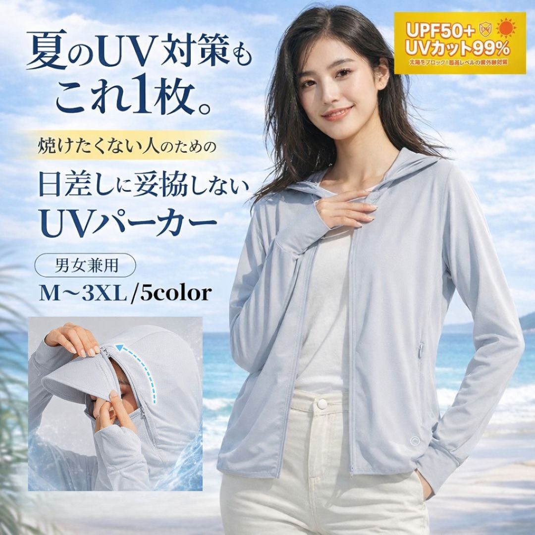 レディース UV パーカー UVカット メンズ 長袖 帽子 指穴 ひんやり 長袖パーカー 長袖 フード付き 体型カバー トップス ジップアップ 大きいサイズ ジップアップパーカー ショート丈 フィット感 ひんやり ワイド 定番 着る日焼け止め UVカット UVケア