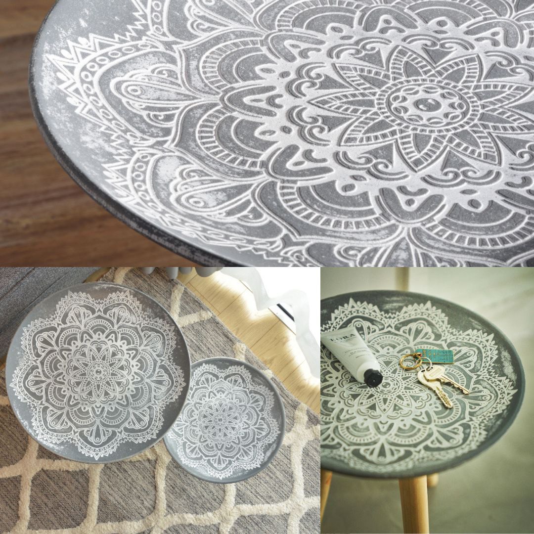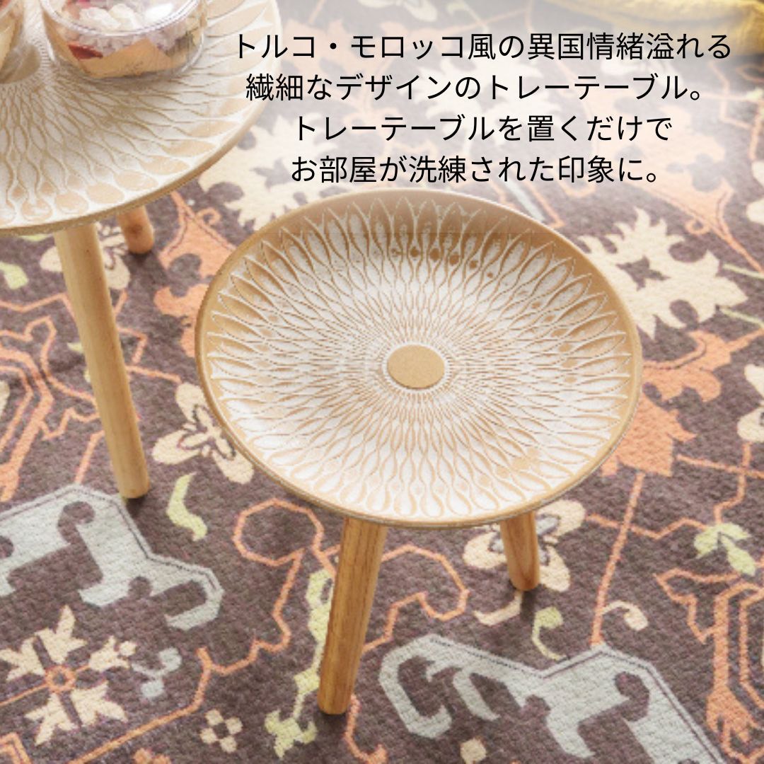 天板のモロッコ風模様・レリーフが繊細な模様のトレーテーブル 【Sサイズ】