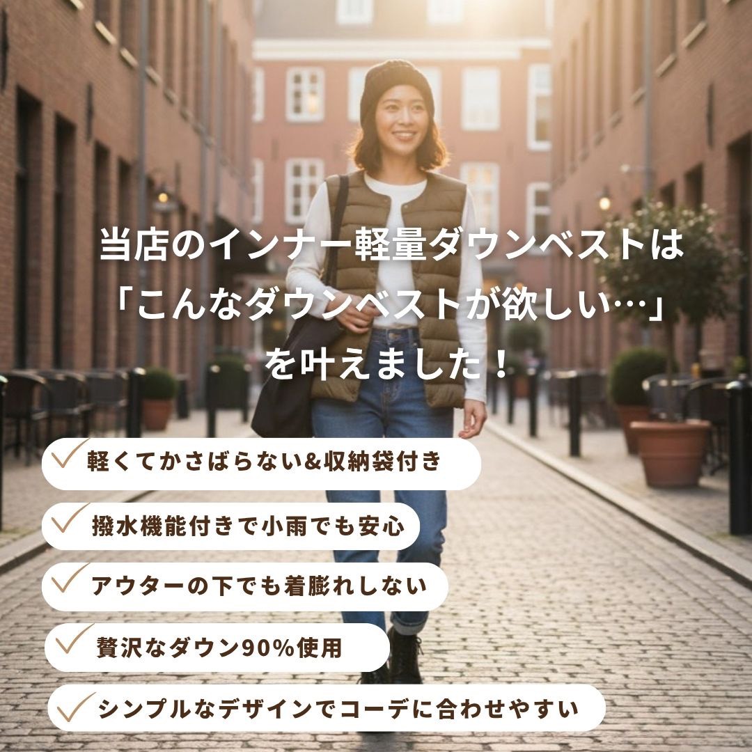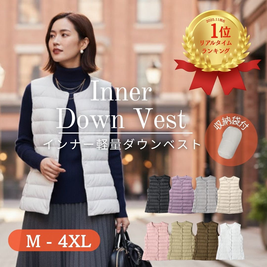 ダウンベスト レディース インナーベスト 薄手 インナーベストダウン ダウンジャケット レディース 軽い 袖なし ジレ 羽毛 軽量 りんごのほっぺ