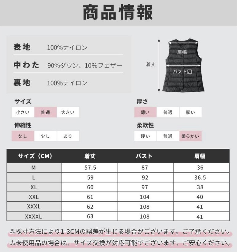 【サイズ感】こちらのダウンジャケットはタイトめのサイズ感です。普段着ているサイズより 1〜2サイズ上 をお選びいただくことを推奨いたします