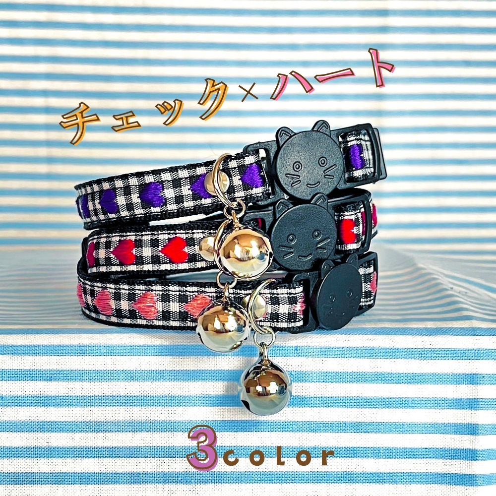 カラー:首輪は黒×白チェックでハートの色:赤・紫・ピンクの3色