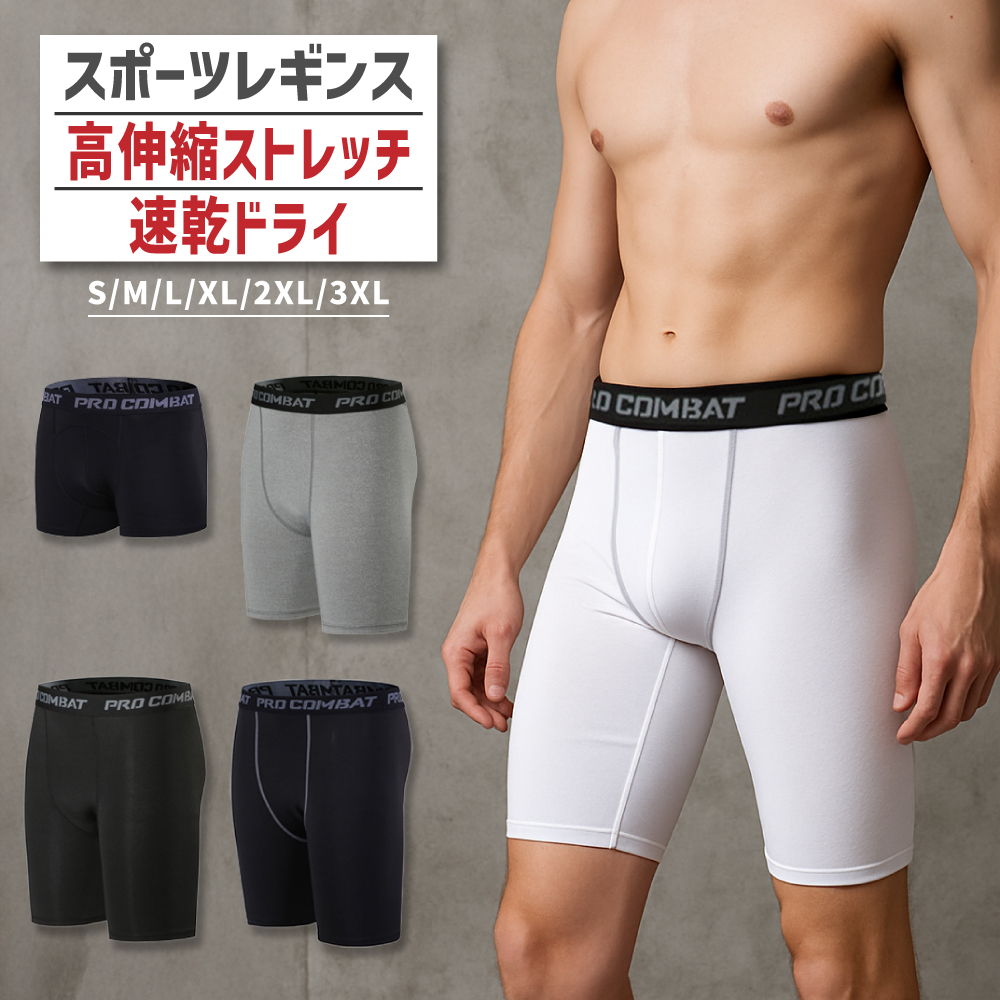 ハーフ丈 一分丈 スポーツ レギンス タイツ スパッツ メンズ 男性 伸縮 ランニング 陸上 バスケット サッカー筋トレ りんごのほっぺ