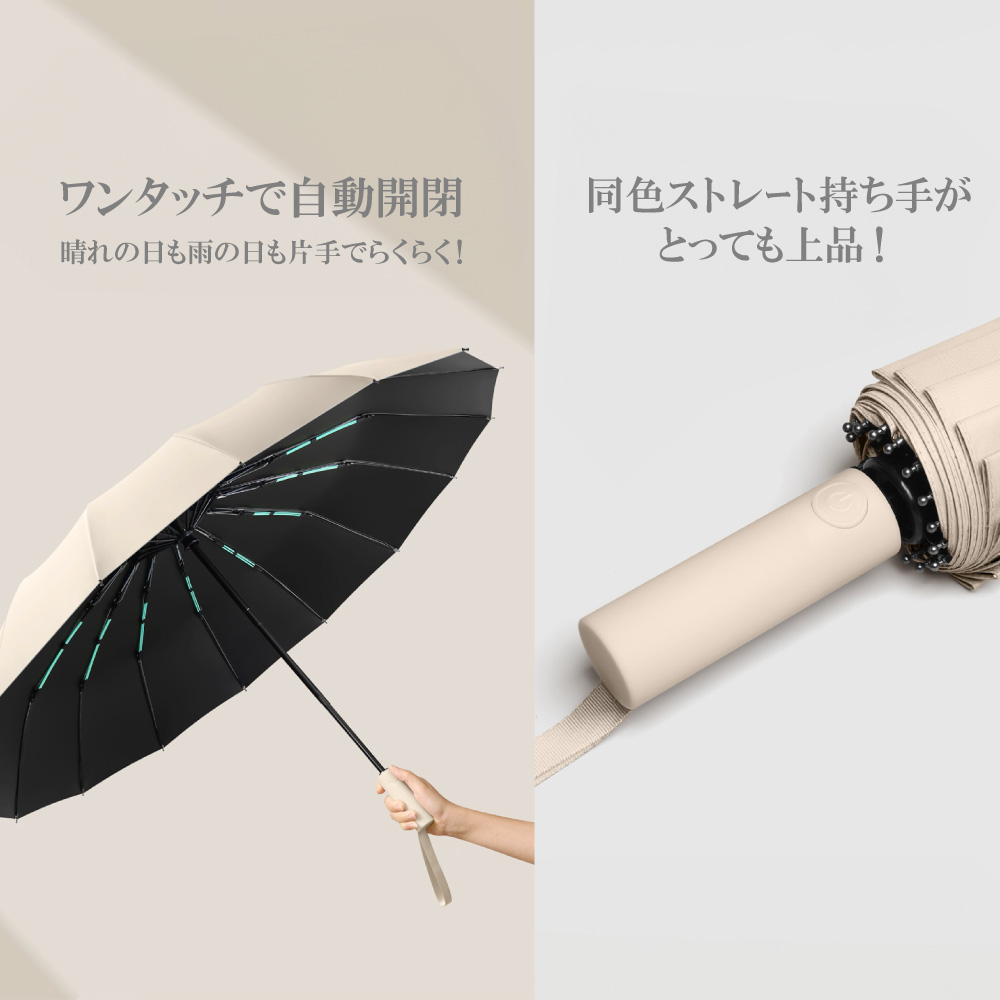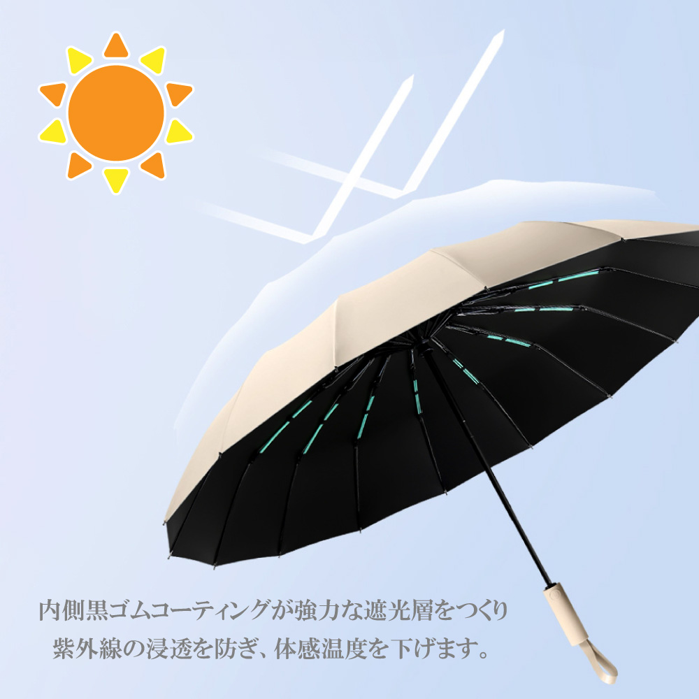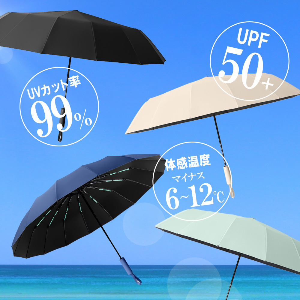 日傘 折りたたみ傘 大きい ワイド メンズ 傘 晴雨兼用 自動開閉 雨傘 16本骨 耐強風 UVカット 遮光 撥水 ワンタッチ開閉 頑丈 丈夫 シンプル りんごのほっぺ