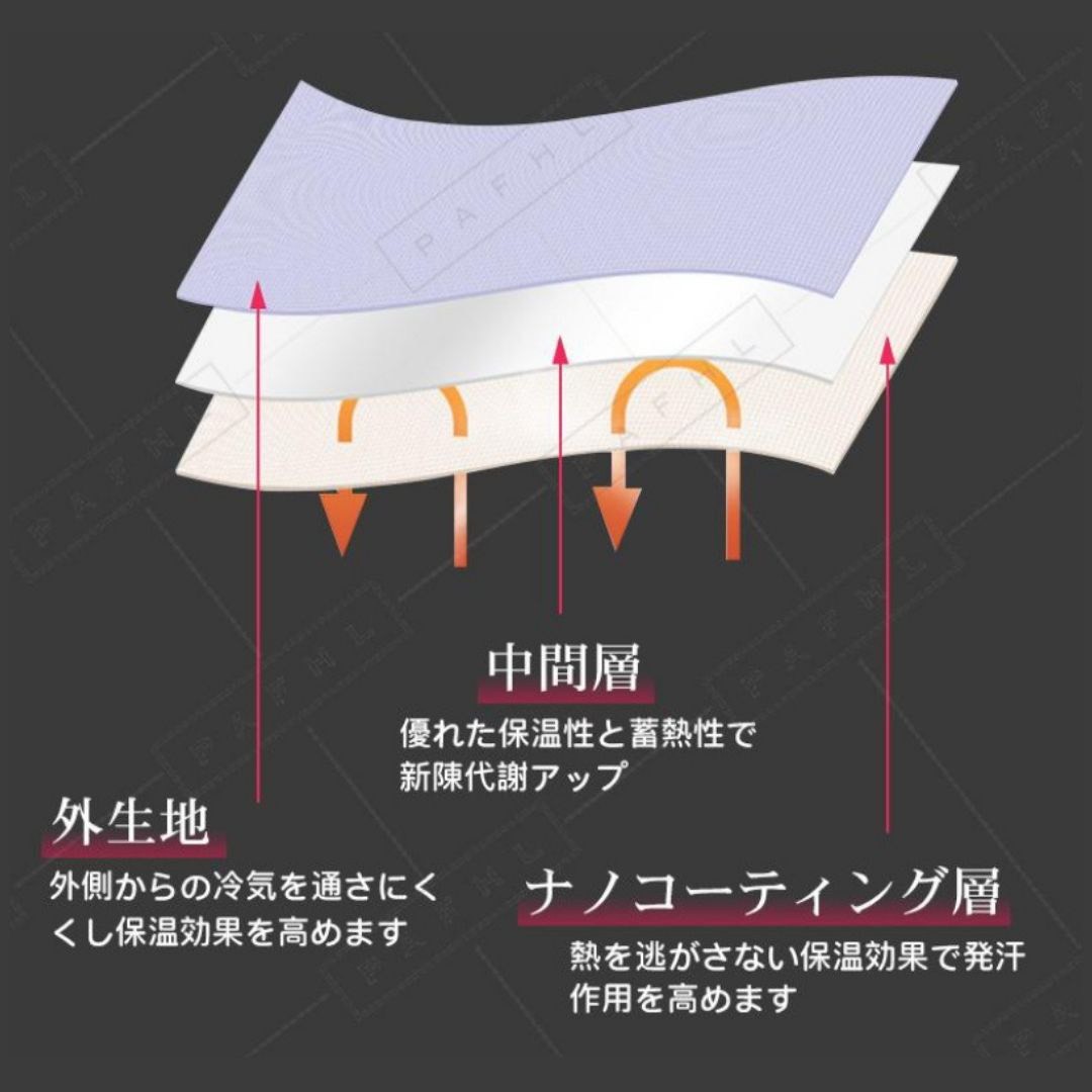 裏地が高密度ナノコーティングを採用し、運動中に発生する熱を逃さず、少しでも体を動かすと汗びっしょりになります。ウォーキング、ジョギング、ヨガなど有酸素運動中着用すれば最適。優れた防風、保温性により、日常生活中防寒対策として着ることもできます。