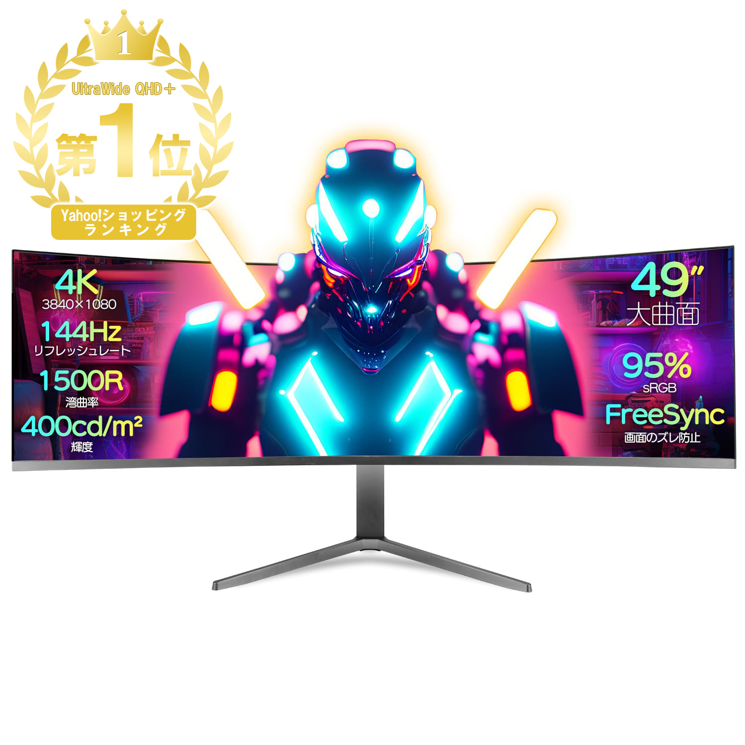ゲーミングモニター 液晶ディスプレイ 49型 曲面モニター 超薄型 178°広視野角 144Hz PS4 PS5 switch 湾曲率1500R 湾曲モニター デュアルスピーカー