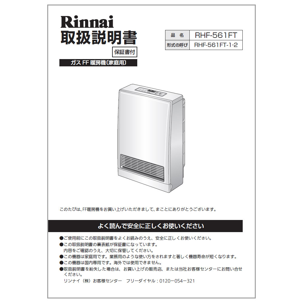 リンナイ 純正部品 (610-0001000) 取扱説明書 ガスファンヒーター 専用
