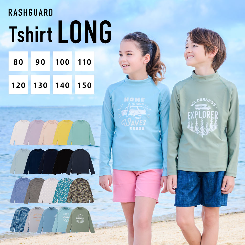 ラッシュガード キッズ 長袖Tシャツ 立ち襟 水着 男の子 女の子 ジュニア UV 日焼け対策