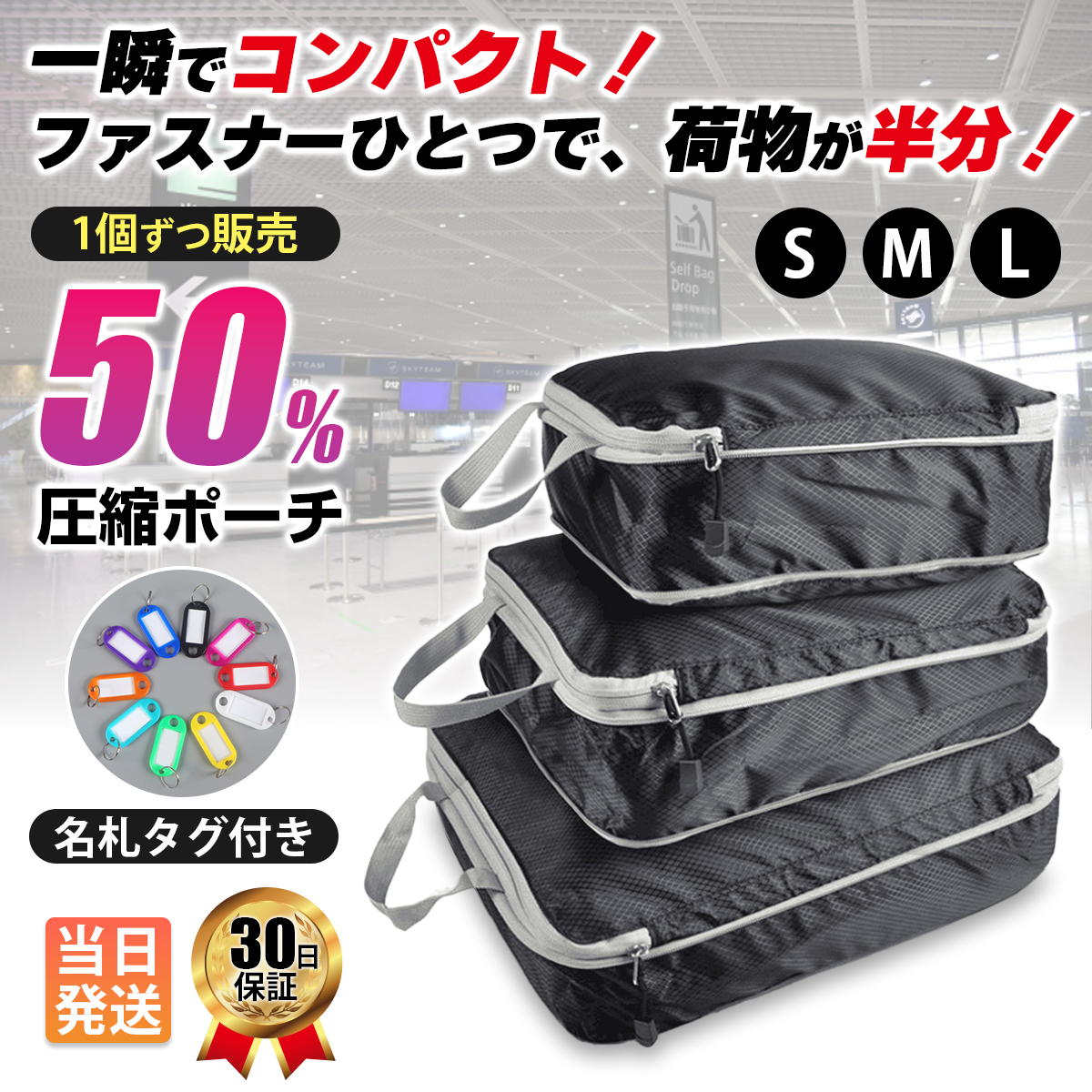 トラベルポーチカラー:ブラックサイズ:S・M・Lサイズ詳細は、画像を確認ください。旅の荷物をスマートに!驚きのコンパクト化を実現する圧縮ポーチ旅行や出張でのパッキング、毎回苦労していませんか?大切な旅の準備をもっとスマートに、もっと快適にする新しいアイテム!1. 圧縮機能で荷物がスッキリ!旅行の際、衣類がかさばってバッグがパンパンに…。そんな悩みを解決するのがこの圧縮ポーチ。衣類をポーチに入れて横のファスナーを閉じるだけで、中の荷物が圧縮されてコンパクトな形状に!大切な旅行バッグのスペースを有効活用できます。2. 旅行も出張もこれ一つでOK!出張の多いビジネスパーソンも、家族旅行を楽しむママも、このポーチがあれば荷物の整理が簡単。おしゃれで機能的なデザインだから、どんなシーンでもマッチします。3. 高品質な素材で耐久性抜群ポーチは高品質な素材を使用し、長くご愛用いただけます。丈夫なファスナーとしっかりとした縫製で、安心してお使いいただけます。4. スタイリッシュなデザインシンプルでスタイリッシュなデザインは、どんなバッグにもぴったり。