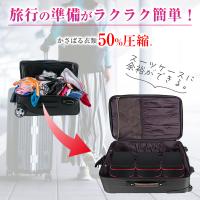 旅行の際、衣類がかさばってバッグがパンパンに…。そんな悩みを解決するのがこの圧縮ポーチ。