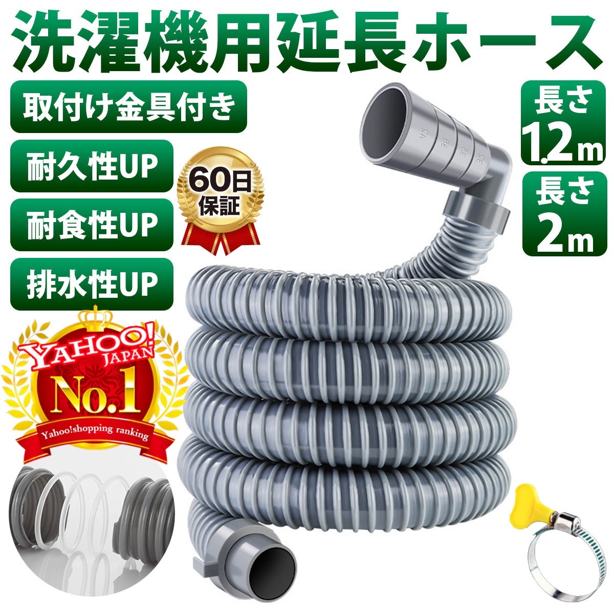 洗濯機排水ホース 延長 排水ホース 洗濯機用排水ホース 延長ホース 2m 1.2m L字 洗濯機 交換 調整 排水 調整可能 抗菌 防臭 抜け防止 水漏れ防止 ワッシャー