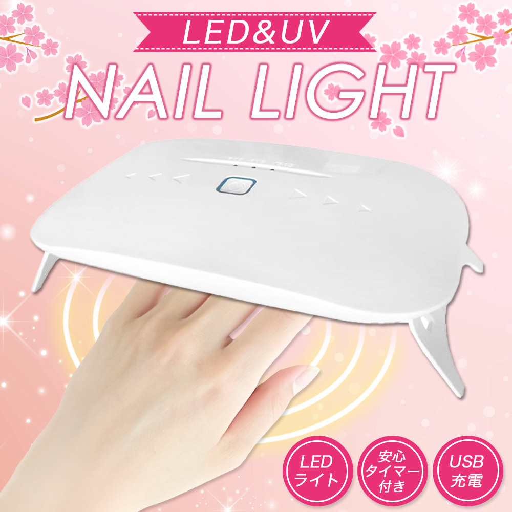 【ITEM DETAIL】商品名 UV/LEDレジンライト 折り畳みスタンドタイプ36W大きさ 約14cm×7cm×4cm数量 1個カラー ホワイト 付属品 USBタイプ給電コード※ACアダプターは付属していません。お手持ちのUSB用アダプターや充電器、パソコンなどをご使用ください。持ち運びに便利な携帯用ジェルネイル硬化用UVライト。折りたたみ式なので携帯しやすく、旅行先や出張先にも持ち運びに便利。ボタンを押すと45秒照射、長押しすると60秒照射します。USB給電式なのでデスク等での使用も気軽に出来ます。●海外製品の為、商品に細かなキズ等ついている場合がございます。細かなキズの場合は、ご交換の対象とならない場合もございますこと、あらかじめご了承ください。●ライトを直視しないでください。●長時間使用しない場合、電源コードをお抜きください。●湿気やほこりの多い環境、直射日光の当たる暑い場所でのご使用および保管はお止めください。●爪や皮膚に異常を感じた際はご使用を中止して下さい。●お子様の手の届かないところに保管ください。●モニタやブラウザの関係で色が実物と異なって見えることがございます。●メール便対応