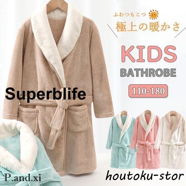 バスローブ キッズ ジュニア 子供用 男の子 女の子 子供パジャマ ルームウェア 厚手 優しい肌触り ガウン ロング 長袖 部屋着 お風呂上り 冬