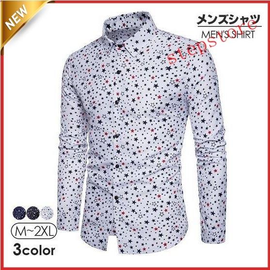 メンズシャツ 男子 メンズ カジュアル 星柄 シャツ 長袖ワイシャツ プリント ストリート系 若者 通学 遊び デート 春服 秋服