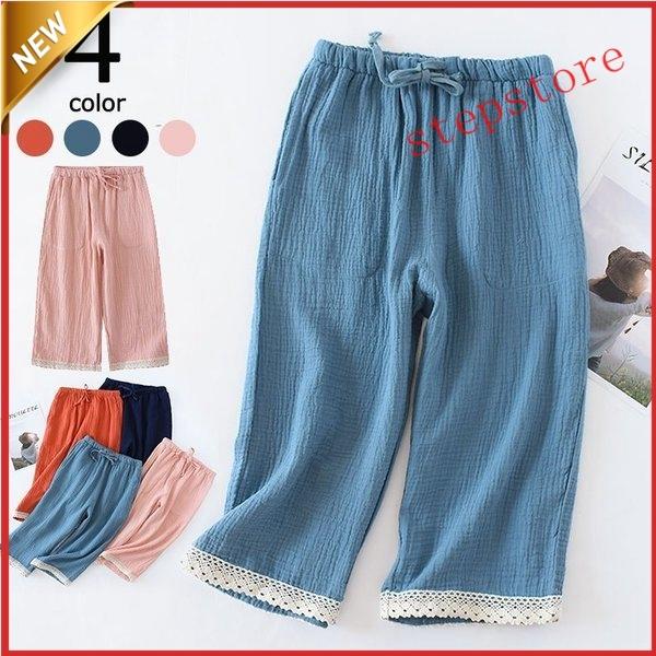 甚平レディースショートパンツ七分パンツゆったり綿無地母の日部屋着薄手2021