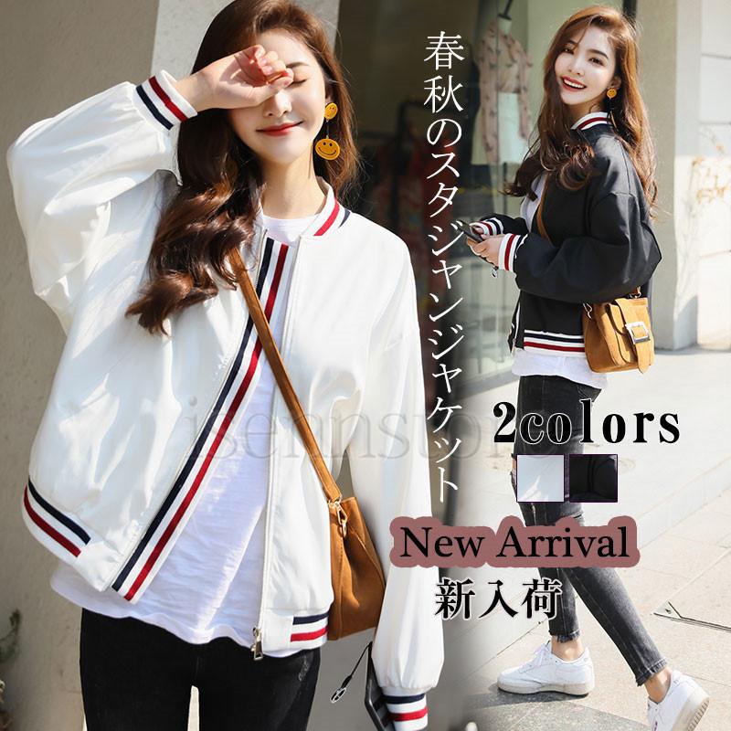 ジャンパー ブルゾン レディース ジャケット アウター 春服 スタジャン ゆる 薄手 カジュアル シンプル おしゃれ 長袖 ナイロン 原宿