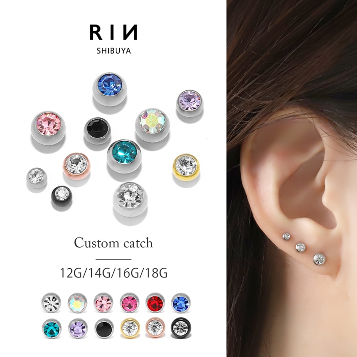 キャッチ ボディピアス 14G 12G 16G 18G 軟骨 キラキラ ボール ジュエル ピアスパーツ カスタム 金属アレルギー対応
