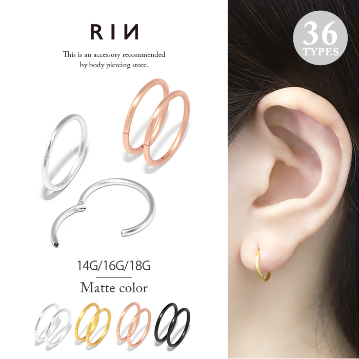 【両耳用・2個売り】 ピアスリング セグメント ピアス 小さめ 金属アレルギー対応 フープ マット シンプル ワンタッチ リング セグメント クリッカー ループ メンズ 耳たぶ 厚い ch-136-2
