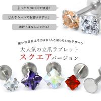ボディーピアス 立て爪 軟骨 四角 しかく 引っかからない セカンドピアス 14ゲージ 16ゲージ ステンレス 立爪 ジュエル 上品 キラキラ 寝れるピアス 耳たぶ 軟骨用 かわいい 可愛い 小さい カワイイ おしゃれ オシャレ お洒落 レディース メンズ ユニセックス 金属アレルギー対応 アクセサリー 内径 選べる 長い インターナル ラブレットスタッド スクエア 軟骨1121 ch-75