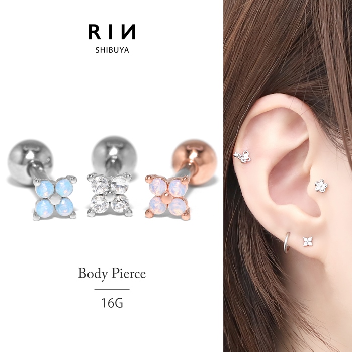 ボディピアス 軟骨 ピアス ジュエル フラワー 花 カワイイ プチ ピンク 青 バーベル トラガス 軟骨1407 d-031